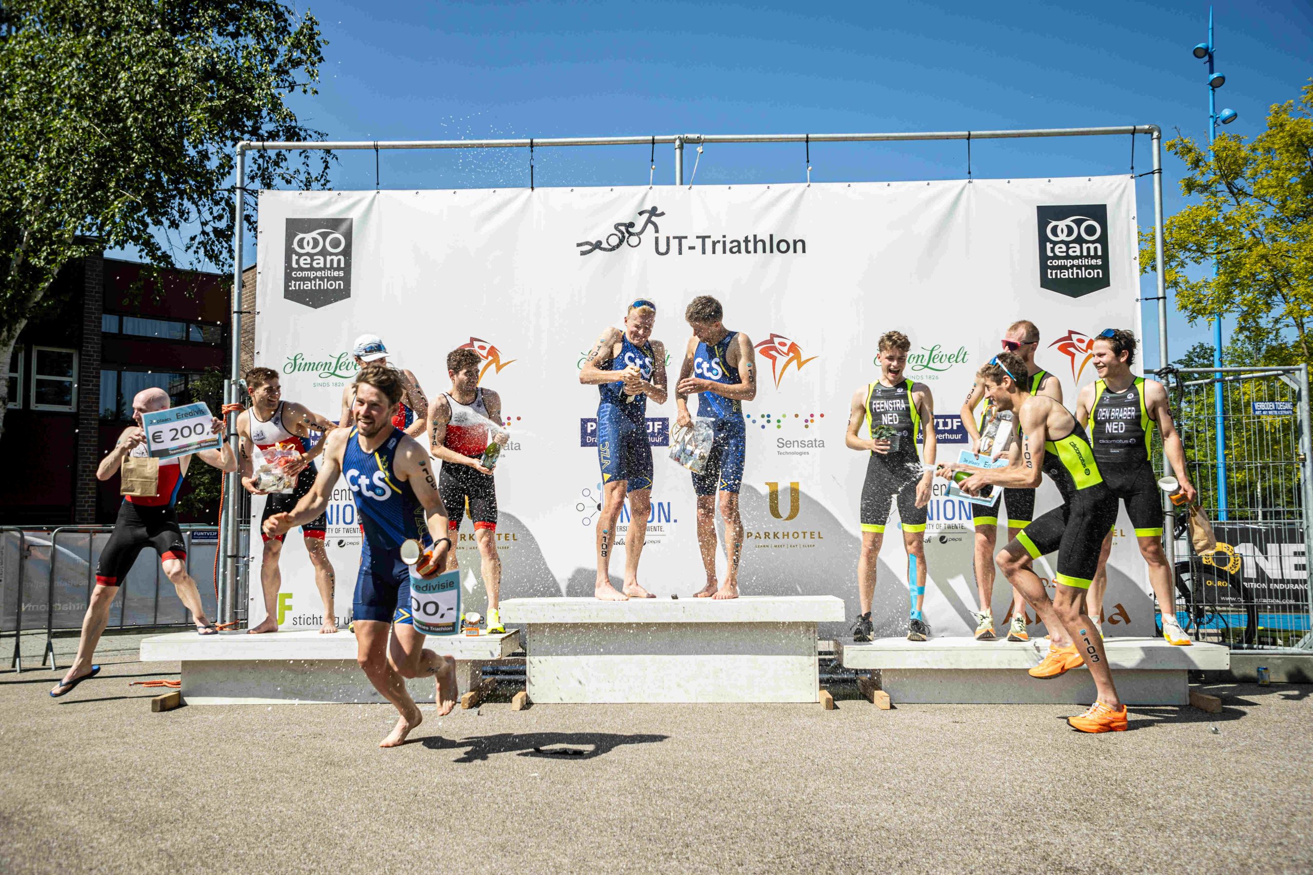 Afgelopen weekend ging in Enschede tijdens de UT-Triathlon ook de eredivisie van start. Ook de VZC teams bij de mannen en vrouwen gingen voor de eerste maal dit seizoen van start. De mannen van VZC, De broers Victor en Lucas Goené, Niels van Lanen en Jorik van Egdom eindigden ’s Morgens in de Top 5 en vergrootte de voorsprong in de Team Time Trial zodat het hoogste treetje op het podium voor hun was.Christina Drainer, Esther Hoezen, Rosanne Diepenveen en Anne-wil Beekman-Veldman beëindigden hun opening van het seizoen op de achtste plaats.Ook de dames Jolanda van de Haar, Alice van Holland, Claire Labrie en Helma van Doorn behaald een 8e plaats in hun Team Time Trial.Alle Uitslagen van de UT-Triathlon kin je vinden via https://nl.mylaps.com/evenementen/uitslagen/2024/may/11/enschede/index.htmlDe Wedstrijdkalender van de TEAM Competities kun je vinden op https://teamcompetities.nl