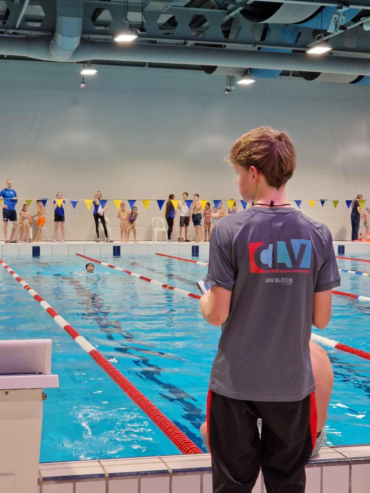 De wedstrijd was in de sportieve handen van twaalf sportklasleerlingen van het CLV. Zij leerden razendsnel hoe je een zwemwedstrijd klokt, waar je op moet letten en hoe je de tijden noteert. Ervaren VZC-zwemmers waaronder de junioren hielpen met de begeleiding van de teams zodat iedereen op tijd bij het juiste startblok stond. Elk team bestond uit minimaal zes zwemmers, waarvan maximaal drie VZC-leden. Of je nu een ervaren wedstrijdzwemmer was, al heel goed kon zwemmen of net je diploma had: de wedstrijd draaide om plezier.